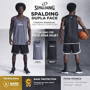Composição: 100% Poliéster Modelagem: Regular Marca: Spalding Tipo: Regata Dupla Face Indicação: Treinos, competições e atividades esportivas