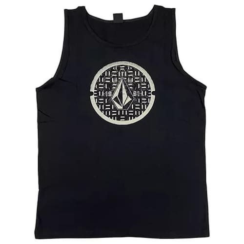 Regata Volcom feita em modelagem regular, meia malha 30.1, silk frontal e etiqueta interna.