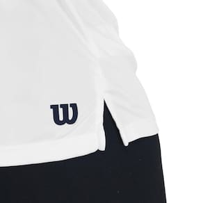 - Detalhamento: Regata, gola alta estilo Henley, sem botões, com uma abertura em V. Acabamento nas golas e ombros que se destaca pela cor contrastante, logo Wilson na altura da barra do lado esquerdo, aberturas de 0,06 cm nas laterais da barra proporcionando liberdade dos movimentos;