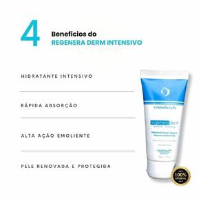 O Regeneraderm Hydra Intense da Cosmobeauty foi desenvolvido para oferecer hidratação profunda e duradoura. Enriquecido com ativos calmantes, promove toque sedoso e aparência revitalizada. Ideal para uso diário, ajuda a equilibrar a textura e o viço da pele. Sua absorção rápida permite uso antes da maquiagem. Indicado para todos os tipos de pele, inclusive as sensíveis.