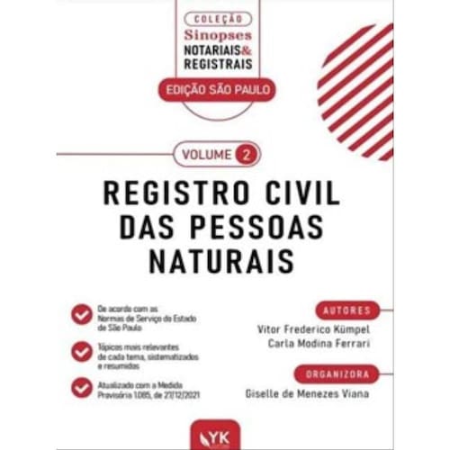 A Coleção Sinopses Notariais e Registrais tem por objetivo proporcionar ao leitor uma visão objetiva, resumida e concentrada dos principais assuntos relativos a cada serventia extrajudicial, selecionados por autores renomados da área. Organizada de forma intuitiva, com design de agradável leitura e linguagem clara e objetiva, a Coleção Sinops essurge como importante aliada nos estudos para Concursos de Cartório, além deser ideal para leitores que buscam um primeiro contato com a matéria, e até mesmo para profissionais da área que desejam se atualizar com as mais recentes novidades legislativas e normativas. Diante da importância das normativas estaduais em matéria notarial e registral, criamos a presente Edição SãoPaulo, inteiramente adaptada de acordo com a versão mais recente e atualizadadas Normas de Serviço da Corregedoria Geral de Justiça do Estado de São Paulo. Diferenciais: de acordo com as Normas de Serviços do Estato de São Paulo Tópicos mais relevantes de cada tema, sistematizados e resumidos Atualizado com Medida Provisória 1.085, de 27/12/2021 Ean: 9786588043301