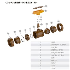 Os novos registros duas porcas foram projetados para garantir estanqueidade total. É a segurança e tranquilidade que você precisa contra vazamentos, eliminando desperdícios de água. O modelo 2 porcas torna a instalação e a manutenção mais práticas, pois ele é inteiramente desmontável. O giro do volante é outro ponto de destaque: seu movimento de abertura e fechamento é realizado com facilidade. Pode ser utilizado em instalações em saneamento, agricultura, aplicações industriais e prediais, como barriletes de prédios, cisternas, grandes reservatórios, etc. Vantagens - praticidade: o modelo 2 porcas permite a desmontagem completa do registro, que auxilia o processo de instalação e manutenção do produto. - tranquilidade: os novos registros possuem estanqueidade total, garantindo máxima segurança contra vazamentos. - economia: evita desperdícios de água, garantindo maior economia ao usuário. - leveza: o giro do volante é leve e suave, o que confere menor esforço para abrir e fechar o registro. - acesso completo: volante acompanha uma chave acoplada, que permite desmontagem total do produto e acesso completo ao interior da peça. Isso permite que os componentes internos possam ser trocados com facilidade para efetuar qualquer reparo. - resistência: possibilidade de aplicação em diversos locais, com diferentes tipos de líquidos. Informações adicionais - referência: 300000789 - tipo: duas porcas - material: pvc - bitola: 85 mm - mecanismo: