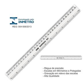 Características: - medidas em milimetros e polegadas - cor cristal transparente. - alta resistencia. - possui gravação das escalas em relevo. - certificada pelo inmetro, padrão superior de qualidade. - tamanho: 30 cm ou 12 polegadas