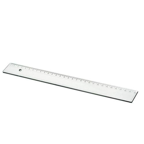Régua em poliestireno, com escala de 30 cm gravada por transferência de imagem, garantindo alta precisão.
