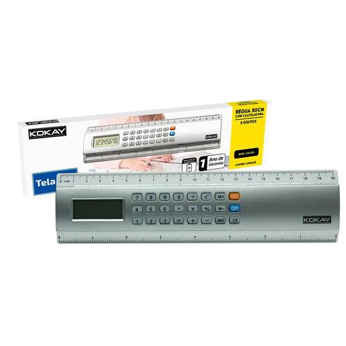 A KOKAY traz mais praticidade com a CK-130, uma régua com calculadora integrada. Faça seus cálculos simples ou complexos com o display LCD de 8 dígitos e utilize a régua nas suas tarefas diárias de trabalho ou estudo. Com bateria substituível não inclusa , é portátil e fácil de utilizar.