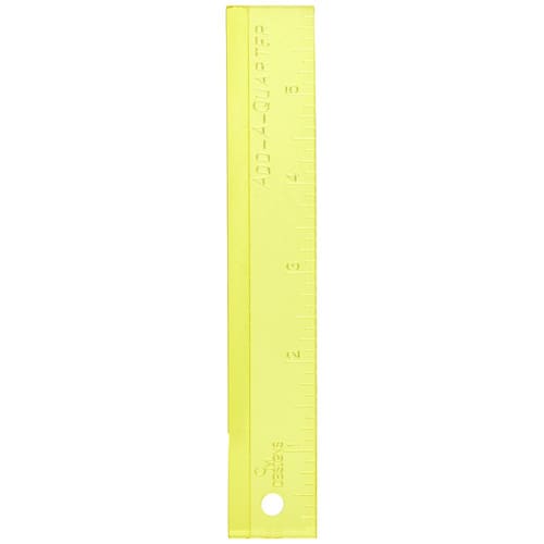 - Marcado em incrementos de 1/8 ao longo do comprimento e feito de plástico amarelo transparente