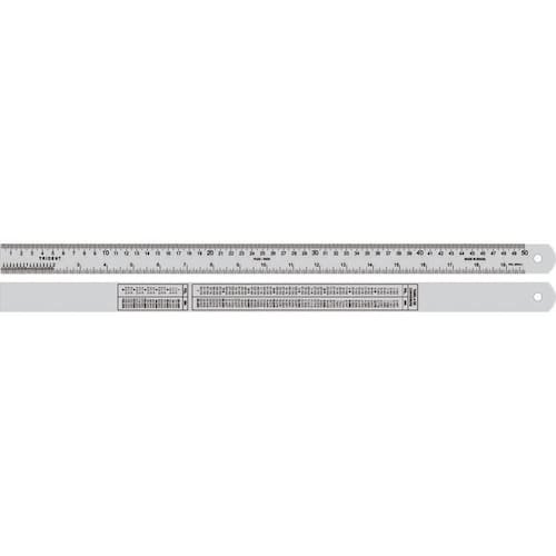 Regua de aco 50cm flex-50 régua ferragista em aço inox trident com 50 cm - ref. Flex-50 flexível, em aço inox temperado e com escalas em baixo relevo. No verso, tabela de conversão de mm/polegada e cm/polegada.