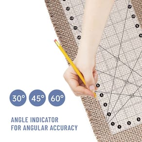 - [Guia de corte em vários ângulos] — Inclui indicadores de ângulo de 30, 45 e 60 graus para cortes perfeitamente angulares, tornando-o ideal para acolchoar, costurar, medir e outros projetos artesanais detalhados. Linhas de guia angulares simétricas garantem facilidade de uso para usuários esquerdos e destros.