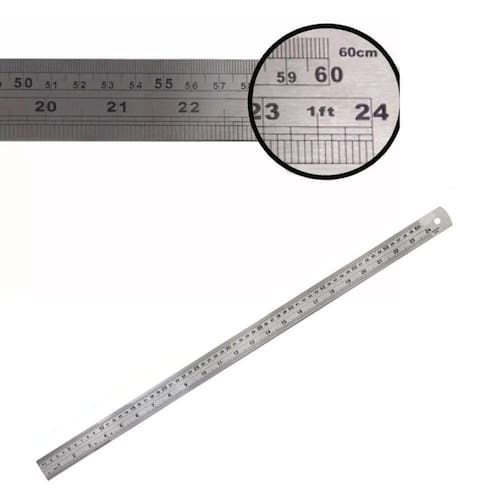 Régua 60cmEscala em milímetro e polegada- Em aço inoxidável Não enferruja - Graduação em milímetros- Indicado para determinar medidas em desenhos ou superfícies- Tipo flexível- Marcações em silk, SEM baixo relevoComprimento: 60 cm 600 mm Largura: 28 mEspessura: 0,90 mmMaterial: Aço Inox
