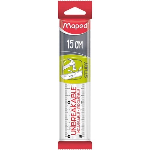 Régua Unbreakable que resiste a tudo. Material à prova de choque. A régua pode resistir a dobras, torções e choques sem quebrar. Ideal para mochilas escolares sobrecarregadas. A régua inquebrável de 15cm é graduada em ambos os lados. Embalagem: BLISTER Ean: 3154142453204