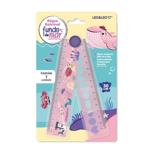 Aventure-se nas profundezas com a régua dobrável 15/30cm fundo do mar leo&leo. Perfeita para crianças e adultos, esta régua apresenta um encantador tema marinho que adiciona um toque de diversão a qualquer tarefa de medição. Com um design dobrável, ela passa de 15cm a 30cm, oferecendo portabilidade e praticidade. Feita com materiais duráveis, é ideal para uso em casa, na escola ou em projetos artísticos. Inspire a criatividade com esta régua versátil e temática. Características: régua compacta, cabe no estojo; linha ondulada e formas para desenhar; atenção: imagem meramente ilustrativa. Pode ocorrer mudanças no tom da cor para o produto real ou mudanças na embalagem sem aviso prévio por parte do fornecedor/fabricante. Marca: Não Informado