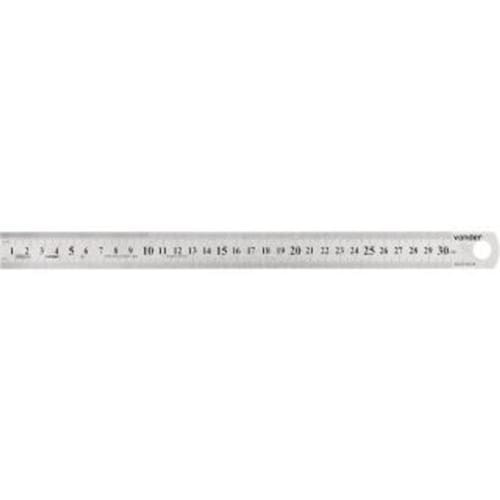 Regua / escala de aco 300mm vonder Conteúdo da embalagem: 1 escala Indicada para medições e traçagens em geral Fabricada em aço inox, proporcionando maior resistência à oxidação/corrosão Graduação da escala: mmComprimento da escala de aço: 300 mmMaterial da escala: aço inoxidávelLargura da escala: 25,0 mmEspessura da escala: 0,7 mmTipo de marcação da escala: baixo relevo