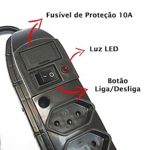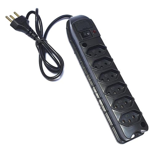 Régua Extensão Elétrica 6 Tomada Filtro Linha BivoltOs Filtro de linha da Prismatec são desenvolvidos atendendo o padrão NBR 60884-1 2004, 13249 e 14338 de segurança e qualidade.São um dos melhores filtro de linha do mercado de Protetor Elétrico a linha do nosso produto totalmente seguros trazendo benefícios e segurança para nosso clientes.Protegendo contra sobre tensão seus eletrodoméstico, celulares, bombas de aquário, TVs, micro-ondas, DVRs, computadores, etcTrazendo mais segurança na sua casa e sua família.Possui chave liga-desliga, luz indicadora de LED vermelha e fusível com suporte para fácil troca.FICHA TECNICA:Tamanho do Cabo: 90 cmTamanho da Régua: 25 cmQuantidades de Tomadas: 6 TomadasTipo de Tomada: 2P+T (3 pinos)Potência Max em 127v: 760WPotência Max em 220v: 1320WCorrente Max: 6A / 220vComposição: Plástico, cobre, latão e PVC AntichamasBotão Liga/Desliga: SimLED de Funcionamento: SimFusível: 10A