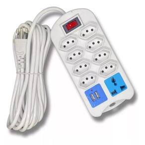 Extensão Elétrica 8 Tomadas Régua Com 2 Usb Com Cabo 2 Metros