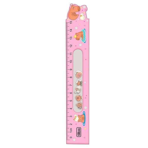 Além disso, a régua tem uma janela com minicapivaras que se movimentam, tornando-a ainda mais encantadora.