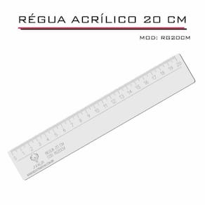 Características: - medidas em milimetros - fabricado em acrilico 3mm - cor cristal transparente. - alta resistencia. - possui gravação das escalas em baixo relevo. - tamanho escala: 20 cm -medidas: 21 x 3,5 cm