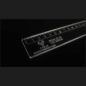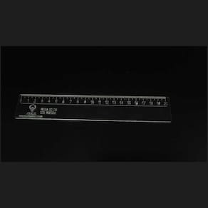 Descrição: Régua de acrilico cristal transparente sem rebaixo, corte das arestas reta e cantos arredondados, gravação da escala por rebaixo à laser. Muito utilizada em cursos de desenho e mediçoes técnica, a régua de acrilico é fabricada para atender aos diversos casos em que se necessita uma medição precisa. Sua escala é fabricada através de gravação a laser baixo relevo, garantindo uma precisão eletrônica na peça, e não removível com o tempo de uso. Possui as arestas de medição retas - bordas restas, sem chanfro - (padrão de desenho técnico), evitando o erro de paralaxe ou inclinação da lapiseira/caneta durante o tracejado.