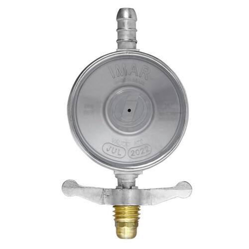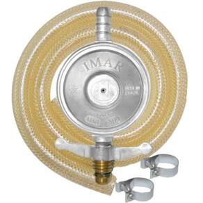 Pressão de entrada: 69 a 686 kPa Pressão de saída: 2,1 a 3,2 kPa Vazão: 1,0 kg/h GLP Conexão de entrada: Rosca de 5/8 UNC botijão P-13 Conexão de Saída: 12 para mangueira de PVC Materiais utilizados: Zamac, alumínio, aço, latão e borracha. Acessórios: Mangueira de PVC de 1,25 m e duas abraçadeiras Tamanho: 6x17x18cm
