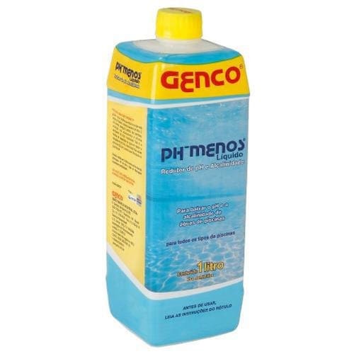 Informação do produto: O regulador de ph Genco ph menos regulador de alcalinidade é um produto líquido para reduzir o pH de sua piscina. composto por ácido líquido para baixar o ph e a alcalinidade total. Deve-se utilizar testes e aplicar o produto quando o ph estiver acima de 7,8 ou a alcalinidade total acima de 120 ppm. Contém 1 litro.