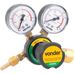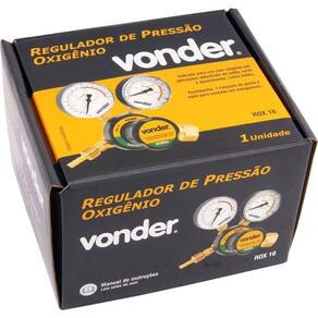 Regulador De Pressão Oxigênio Rox10 - Vonder Conteúdo da embalagem 1 Regulador de pressão. Acompanha: 1 conjunto de porca e niple para conexão em mangueiras. Aplicações e dicas de uso Indicado para uso com oxigênio em aplicações industriais de solda, corte e aquecimento. Linha média. Destaques e diferenciais Possui corpo em latão forjado e capa em alumínio injetado com pintura epóxi, proporcionando maior resistência. Atende as exigências das normas EN-2503 / ABNT 14250 / ABNT 218-1 e CGA E1-23. DETALHES TÉCNICOS