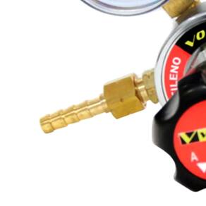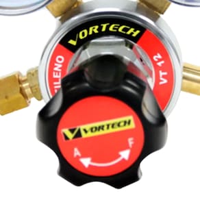Gás: Acetileno;Regulador de simples estágio;Manômetros de 63mm de diâmetro classe B de acordo com a norma ABNT NBR 13196;Pressão máxima dos manômetros: Entrada: 40 KgF/cm², Saída: 3 KgF/cm²;Conexão de entrada 225-2 de acordo com a norma ABNT NBR 11725 e de saída Nº 23 de acordo com a norma CGA E-1;Pressão máxima entrada: 25KgF/cm²;Pressão máxima saída: 1KgF/cm²;Vazão: 6m³/h;Fabricado de acordo com a norma ABNT NBR 14250.