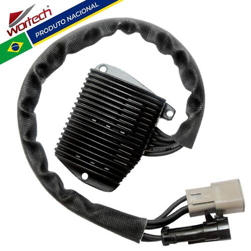 - Tecnologia: Tiristor com circuito aberto - Potência Máxima: 480W - Tensão de saída: 13,6 a 14,8V - Amperagem: 50A - Conector: Em Nylon de alta qualidade - Chicote: Cabos de silicone de alta temperatura - Terminais: metálicos estanhados de alta condutividade - Dissipação: Carcaça em alumínio com alto poder de refrigeração - Dimensões da carcaça (Altura x Largura x Comprimento): 40 x 73 x 117 mm - Distância entre os furos: 100 mm - Espessura da parte de fixação: 5 mm