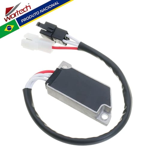 Marca: Wortech (Indústria Brasileira) Código: W-240235/47 Características do produto: - Tecnologia: Circuito com Transistor (MOSFET)- Melhor Eficiência que os circuitos (Shunt fechado)- Temperatura de trabalho: de 40°C a 60°C- Potência Máxima: 480W- Tensão de saída: 13,6 a 14,8V- Amperagem: 50A- Conector: Em Nylon de alta qualidade- Terminais: metálicos estanhados de alta condutividade - Dissipação: Carcaça em alumínio com alto poder de refrigeração- Dimensões da carcaça (Altura x Largura x Comprimento): 16 x 34 x 77 mm- Distância entre os furos: 69 mm - Espessura da parte de fixação: 5 mm Conexões: - 01 > Conector 3 vias com chicote de 280 mm- 01 > conector 1 via com chicote de 310 mm Itens Inclusos: - 01 > Regulador Retificador- 01 > Certificado de garantia - Garantia total de 12 meses Marca: Wortech