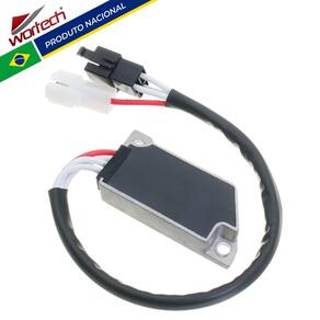 - Tecnologia: Circuito com Transistor (MOSFET) - Melhor Eficiência que os circuitos (Shunt fechado) - Temperatura de trabalho: de 40°C a 60°C - Potência Máxima: 480W - Tensão de saída: 13,6 a 14,8V - Amperagem: 50A - Conector: Em Nylon de alta qualidade - Terminais: metálicos estanhados de alta condutividade - Dissipação: Carcaça em alumínio com alto poder de refrigeração - Dimensões da carcaça (Altura x Largura x Comprimento): 16 x 34 x 77 mm - Distância entre os furos: 69 mm - Espessura da parte de fixação: 5 mm