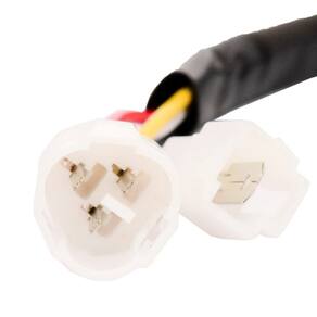 - 01 > Conector de 3 vias com 1 cabo vermelho, 1 amarelo e 1 branco de 300 mm - 01 > Conector de 1 via com 1 cabo preto de 300 mm
