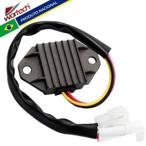 Marca: Wortech (Indústria Brasileira)Código: W-400637/50 Características do produto: - Tecnologia: Tiristor com circuito Shunt - Potência Máxima: 220W- Tensão de saída: 13,6 a 14,8V- Amperagem: 25A- Conector: Em Nylon de alta qualidade- Terminais: metálicos estanhados de alta condutividade - Dissipação: Carcaça em alumínio com alto poder de refrigeração- Dimensões da carcaça (Altura x Largura x Comprimento): 19 x 74 x 43 mm- Distância entre os furos: 60 mm - Espessura da parte de fixação: 3 mmConexões: - 01 > Conector de 3 vias com 1 cabo vermelho, 1 amarelo e 1 branco de 300 mm- 01 > Conector de 1 via com 1 cabo preto de 300 mm Itens Inclusos:- 01 > Regulador Retificador- 01 > Certificado de garantia Garantia total de 12 meses Marca: Wortech