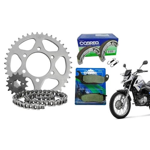 itens inclusos: 01 coroa - 01 corrente sem retentor - 01 pinhão - 01 lona freio traseira - 01 pastilha freio dianteiro compativel com: xtz crosser 150 para os anos: 2015 - 2016 - 2017 - 2018 - 2019 marca fabricante relacao: dvsc marca fabricante freios: cobreq medidas: coroa 41 dentes - pinhão 14 dentes - corrente 428 x 122 sem retentor disponibilidade imediata