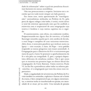 O Cardeal Joseph Ratzinger, em 1984, Prefeito da Congregação para a Doutrina da Fé, aceitou o convite do jornalista V. Messori para um diálogo sincero, na forma de livro-entrevista, sobre os rumos que a Igreja Católica tomou depois do Concílio. "Relatório sobre a Fé" oferece 13 capítulos que tratam da interpretação e da recepção do Vaticano II, que falam da crise de fé contemporânea, mas, também, de esperança, da verdadeira reforma e da salvação que só pode vir de Jesus Cristo. "Este não é um livro comum. Ele é, sem dúvida, em si mesmo, um acontecimento." (Prefácio)