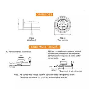 O relé fotoeletrônico tem a finalidade de automatizar uma lâmpada ou todo um sistema de iluminação. Por se tratar de um produto com baixo custo, sua viabilidade em vários tipos de projetos se torna viável, entregando uma automação econômica e funcional.É de fácil instalação, pode se fazer sua ligação em 220V ou mesmo em 127VCaracterísticas:Tensão: bivolt automático - 127/220V~Frequência: 50/60Hz;Temperatura de operação: -5 a 50ºCCorpo em polipropileno
