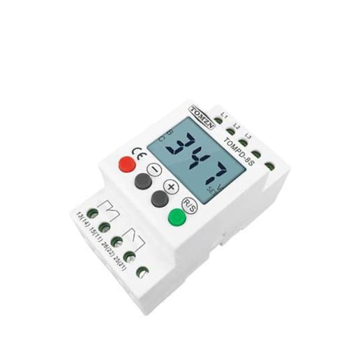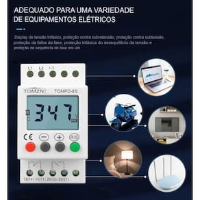 Relé proteção de tensão trilho din trifásico ajustável Recursos -microprocessador fornece proteção -lcd e teclado integrados oferecem uma configuração precisa - ompartimento modular compacto de 43mm - Sobretensão e subtensão ajustável, limite de desequilíbrio de fase - Tempo de atraso ajustável independente para sobretensão, desequilíbrio de fase de subtensão - Redefinição manual do método de redefinição automática do selador - 1 contatos no e inc - Gravação de falha com as últimas 3 falhas Aplicações de funções de proteção- Perda de fase falha - Sequência de pase reversão - Desequilíbrio de fase assimetria - Subtensão - Sobretensão Aplicações - Bombas,Ventiladores, unidade de refrigeração, sopradores, motores, compressores, elevadores, elevadores, guindaste, escavadeiras de mineração e transportadores Tensão nominal: 380v 50-60hz, faixa de operação: 300-490vac Marca: Ketotek