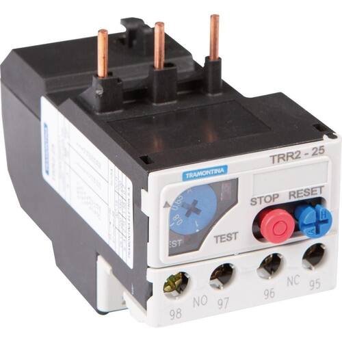 Rele Termico De Sobrecarga Tramontina Trr2-25 Relé Térmico de Sobrecarga Tramontina TRR2-25 O Relé Térmico de Sobrecarga Tramontina é destinado para proteção de motores elétricos trifásicos em situações de sobrecargas e faltas de fase. Ele apresenta elevada robustez e confiabilidade e dispõe de dois contatos auxiliares (1NA 1NF) para realizar o desligamento do contator em caso de sobrecarga do motor. Ainda, possui ajuste da corrente de disparo para adequação ao motor instalado. Pode ser aplicado em automações industriais, acionamento de bombas d?água, entre outras.