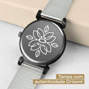 Relógio feminino orizom - modelo maria - tipo: analógico - material: aço inoxidável com pintura eletrostática - cor do maquinário: preto - cor do mostrador: preto - tampa: blindada, com arte exclusiva da orizom, contendo todos os detalhes de autenticidade