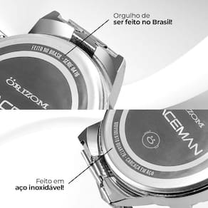 O kit inclui um relógio analógico prateado com fundo preto Orizom Spaceman, feito em aço inoxidável de alta qualidade para adicionar um toque de sofisticação ao seu visual.
