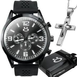 Relogio Aço Inox Preto + Corrente Crucifixo + Caixa Qualidade Premium Presente Social Casual KIT PRESENTE ORIZOM SPACEMAN - RELÓGIO MASCULINO ANALÓGICO + CORRENTE EM AÇO INOXIDÁVEL Este kit é simplesmente perfeito para presentear em ocasiões especiais! Você vai se apaixonar por este relógio masculino analógico da renomada marca Orizom Spaceman, conhecida por sua qualidade premium. O relógio possui maquinário em aço inoxidável com pintura eletrostática preta black piano e uma pulseira em silicone ajustável, adaptando-se confortavelmente a qualquer pulso.