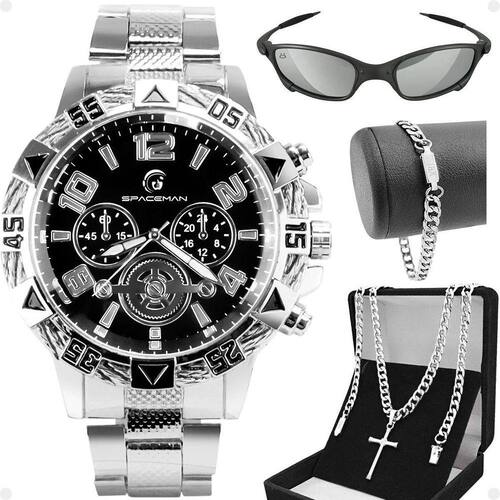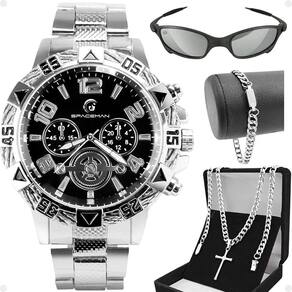 Relogio aço inox pulseira oculos sol cordão presente social casual religioso qualidade premium