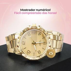 Características do Relógio Dourado: - Design todo dourado que transmite sofisticação e estilo. - Resistente à água, garantindo durabilidade e confiabilidade em qualquer situação. - Maquinário blindado de aço inoxidável para precisão e desempenho duradouro. - Pulseira em silicone ajustável, proporcionando conforto e se adaptando a qualquer diâmetro de pulso. - Dimensões: Largura: 4cm, Altura da máquina: 1cm, Comprimento de alça à alça : 4,8cm.