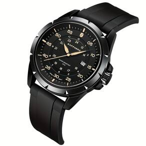 [Uso diário versátil] Com resistência à água de até 50 metros, este relógio preto é o companheiro ideal para todas as ocasiões, garantindo durabilidade e proteção.