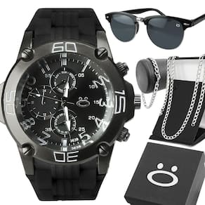 Relógio Aço Preto Social Presente Silicone Ponteiro Qualidade Premium Grumet Black Piano Autêntico Kit de Acessórios Masculinos Orizom Spaceman - Relógio, Óculos de Sol, Cordão, Pulseira e Caixa Premium