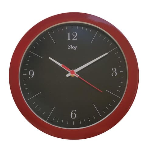 Relógio Alumínio 270mm Pintado Vermelho Fundo Preto Relógio em alumínio, com pintura eletrostática, na cor vermelha com design simples e elegante que irá completar a decoração do seu ambiente. Excelente qualidade; Ótima opção para decorar a parede de sua casa. Ótima opção também para presentear uma pessoa especial. Especificações: Aro: alumínio pintado vermelho Tamanho: 27 cm diâmetro Marca: Sieg : 12 meses Alimentação: pilha AA Mecanismo: Contínuo Sobre a marca: O Grupo Sieg é uma empresa focada no desenvolvimento, produção e distribuição de produtos modernos e personalizados para residências e escritórios. O trabalho metódico , com ênfase na inovação, na eficiência e na qualidade dos produtos, e o esforço de todos os membros da empresa, atendendo às necessidades que surgem em cada etapa de desenvolvimento de um produto, tornam possível atingir suas metas e objetivos, pois estão comprometidos com a qualidade e responsabilidade de fornecer aos seus clientes os melhores produtos do mercado. Com o objetivo de atender o mercado brasileiro de forma eficiente e superando expectativas, o Grupo Sieg assume a necessidade de um design diferenciado para seus produtos, como um fator chave para a competitividade em um mercado exigente. Convidamos você a participar desta experiência