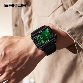 Especificações [Design robusto] O SANDA 6273 possui uma caixa retangular de 15mm de espessura e 45,5mm de diâmetro com um mostrador analógico-digital, garantindo um visual ousado e sofisticado que se destaca. [Conforto e durabilidade] Sua pulseira feita de silicone de 25mm de largura e 26cm de comprimento, combinada com um fecho de fivela, oferece ajuste perfeito e durabilidade prolongada. [Resistência À Prova Da Água] Com profundidade de resistência à água de 5 bar, você pode explorar sem preocupações, de atividades esportivas a mergulhos casuais. [Recursos avançados] O relógio possui tela de LED, cronógrafo, calendário completo, alarme e função de repetição, mantendo você sempre atualizado. [Material de alta qualidade] O visor é feito de Hardlex, conhecido pela sua resistência a riscos, perfeito para uso ativo e proteção do mostrador.