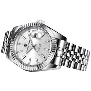 Movimento Automático: O mecanismo automático dispensa baterias, utilizando o movimento natural do braço para manter o relógio em funcionamento, oferecendo uma precisão e uma experiência de uso contínuo.