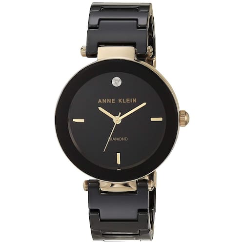 Quando o seu visual precisar ser lustroso e sofisticado, tenha a certeza de usar o Relógio Preto com Pulseira de Cerâmica e Diamante da Anne Klein. O diamante genuíno de 1,0 mm que fica no ponteiro de 12 horas brilha e ofusca contra o mostrador preto brilhante. Detalhes em tom dourado adicionam um toque clássico à pulseira de cerâmica ajustável com um fecho de joia, enquanto o ponteiro passa pelos pontos de 3, 6 e 9 horas, providencia um tempo fácil de contar ao mesmo tempo em que usa este lindo relógio feminino. - Tom de preto/dourado. - Diamante genuíno 1,0 mm. - Pulseira de cerâmica.