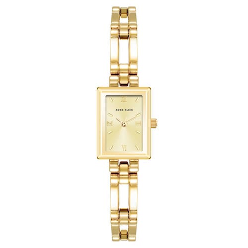 Anne Klein Relógio de pulseira feminino, Dourado, 10/4898CHGP - Lente de cristal mineral facetada de parede a parede - Mostrador de raio de sol champanhe claro com ponteiros e marcadores dourados - Pulseira de elos ajustáveis em tom dourado; fecho de joias e dois extensores - Não é resistente à água