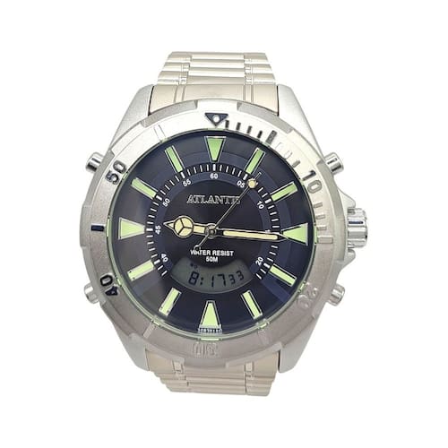 ESPECIFICAÇÕES DO RELÓGIO: Relógio Atlantis autêntico A3482 Analógico e Digital Resistente a Água MARCA: ATLANTIS QUALIDADE: autêntico MATERIAL DA CAIXA: METAL MATERIAL DA PULSEIRA: METAL LARGURA DA CAIXA: 52mm COR DA CAIXA: Prata COR DA PULSEIRA: Prata RESISTENTE A ÁGUA: SIM MOVIMENTO: BATERIA ANALÓGICO