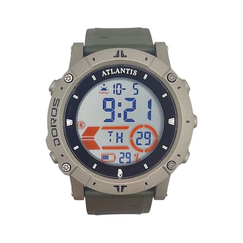 ESPECIFICAÇÕES DO RELÓGIO DE PULSO ATLANTIS DIGITAL DOURADO/MARROM CRONÔMETRO ESPORTIVO RESISTENTE À ÁGUA MARCA: Atlantis MODELO: A8028 Sports/Atlantis autêntico/Dourado/Casual/Estiloso/Masculino/Analógico/Melhor Linha/Marca Atlantis/Médio/Linha Sports/Esportivo GÊNERO: Masculino COR DA CAIXA: Cinza COR DO RELÓGIO: Cinza COR DO MOSTRADOR: Padrão, Números Escuros, Fundo Claro MATERIAL DA PULSEIRA: Borracha MATERIAL DA CAIXA: Resina MODELO DO FECHO: Fivela Simples TIPO DE MOVIMENTO: Bateria TIPO DE VIDRO: Acrílico TAMANHO DA CAIXA INCLUINDO A COROA: 53mm ESPESSURA: 15mm É RESISTENTE À ÁGUA? Sim É ADEQUADO PARA MERGULHO? Não PROFUNDIDADE RESISTÊNCIA À ÁGUA: 50 Metros