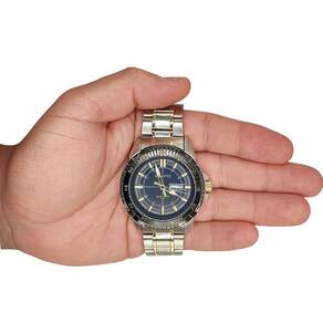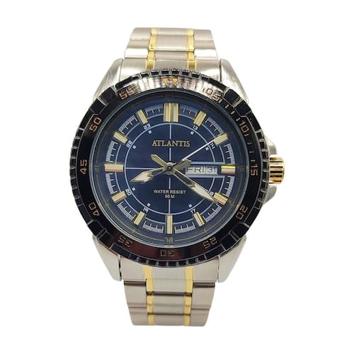 ESPECIFICAÇÕES DO RELÓGIO DE PULSO ATLANTIS SOCIAL MISTO MASCULINO RESISTENTE À ÁGUA: MARCA: Atlantis Sports MODELO: G3392/Atlantis autêntico/Masculino/Analógico/Social/Prático/Moderno/Misto prata e dourado GÊNERO: Masculino COR DA CAIXA: Prateado com detalhe Dourado e Preto COR DO RELÓGIO: Misto COR DO MOSTRADOR: Preto ou Dourado ou Prata MATERIAL DA PULSEIRA: Metal MATERIAL DA CAIXA: Metal MODELO DO FECHO: Fivela Dobrável TIPO DE MOVIMENTO: Bateria TIPO DE VIDRO: Vidro Mineral TAMANHO DA CAIXA INCLUÍDO A COROA: 46mm ESPESSURA: 1cm É RESISTENTE À ÁGUA? Sim É ADEQUADO PARA MERGULHO? Não PROFUNDIDADE DE RESISTÊNCIA À ÁGUA: 50 Metros